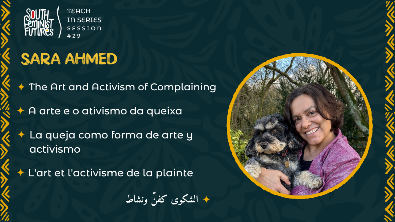 On November 20th, 2025, we held the 29th session of our Political Economy Teach-in Series: “The Art and Activism of Complaining” with Sara Ahmed.