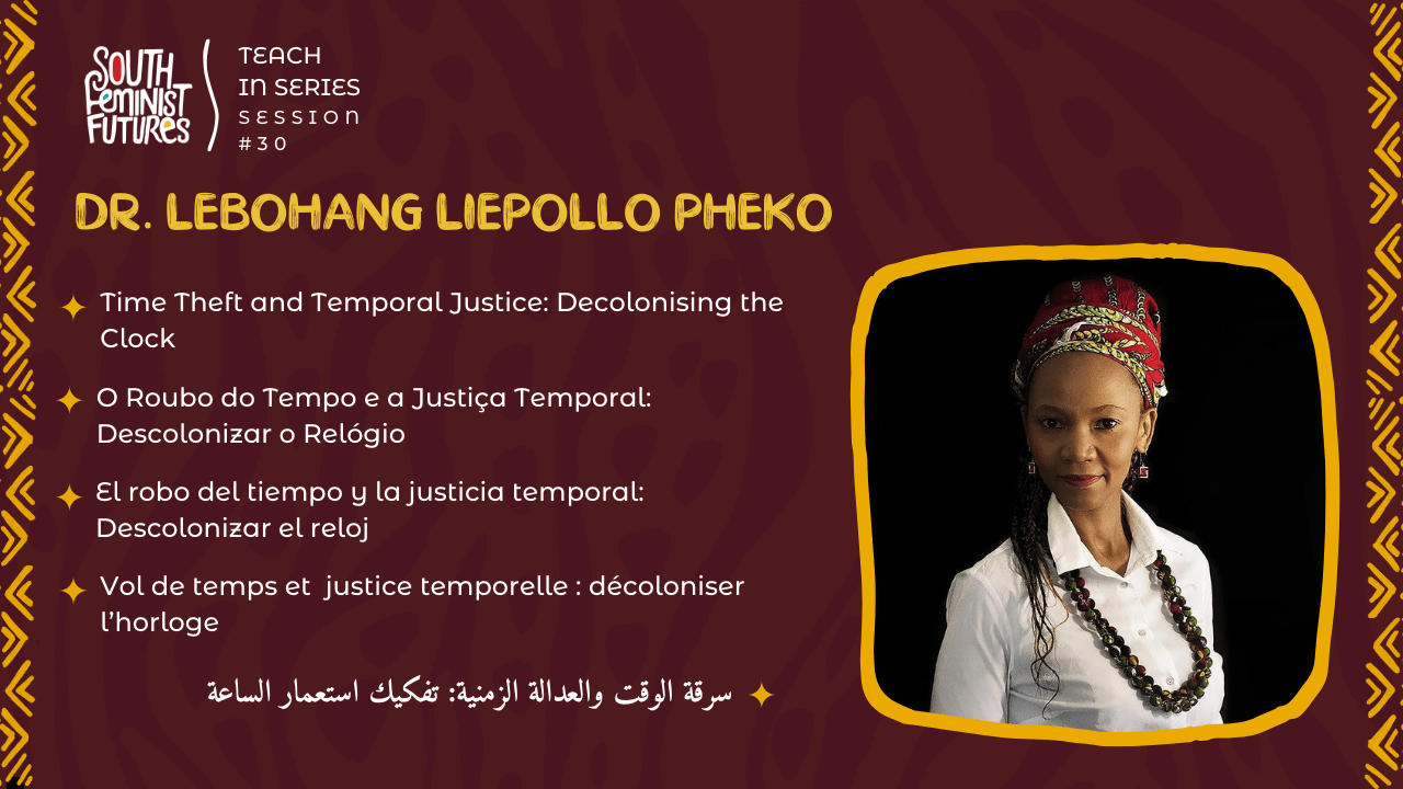 On February 26th, 2026, we held the 30th session of our Political Economy Teach-in Series: “Time Theft and Temporal Justice: Decolonising the Clock” with Dr. Lebohang Liepollo Pheko.