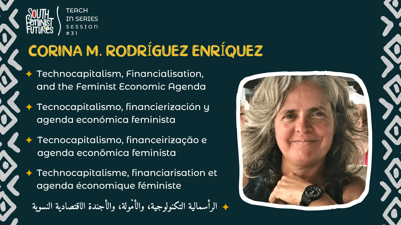 On March 26th, 2026, we held the 31st session of our Political Economy Teach-in Series: “Technocapitalism, Financialisation, and the Feminist Economic Agenda” with Corina M. Rodríguez Enríquez.